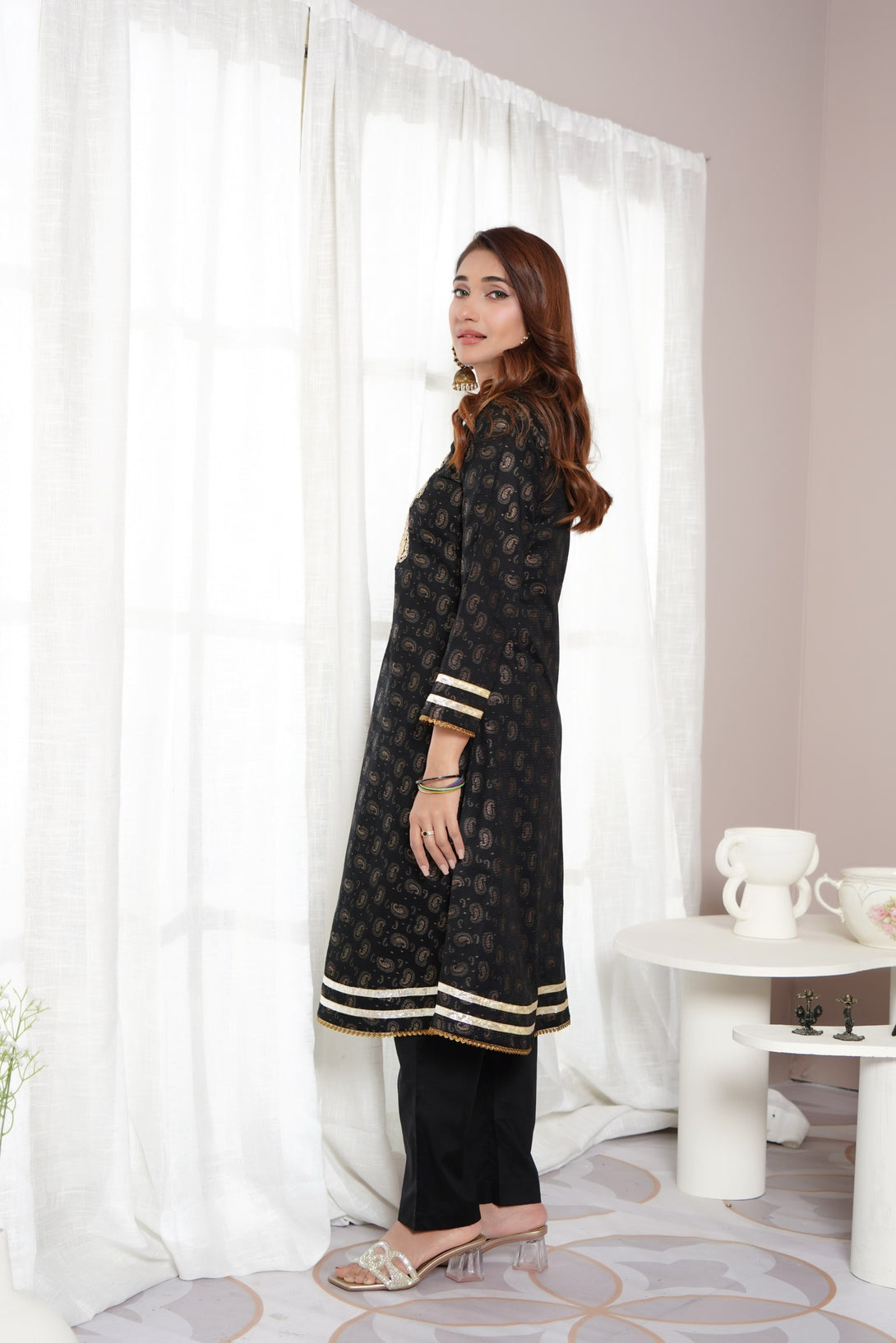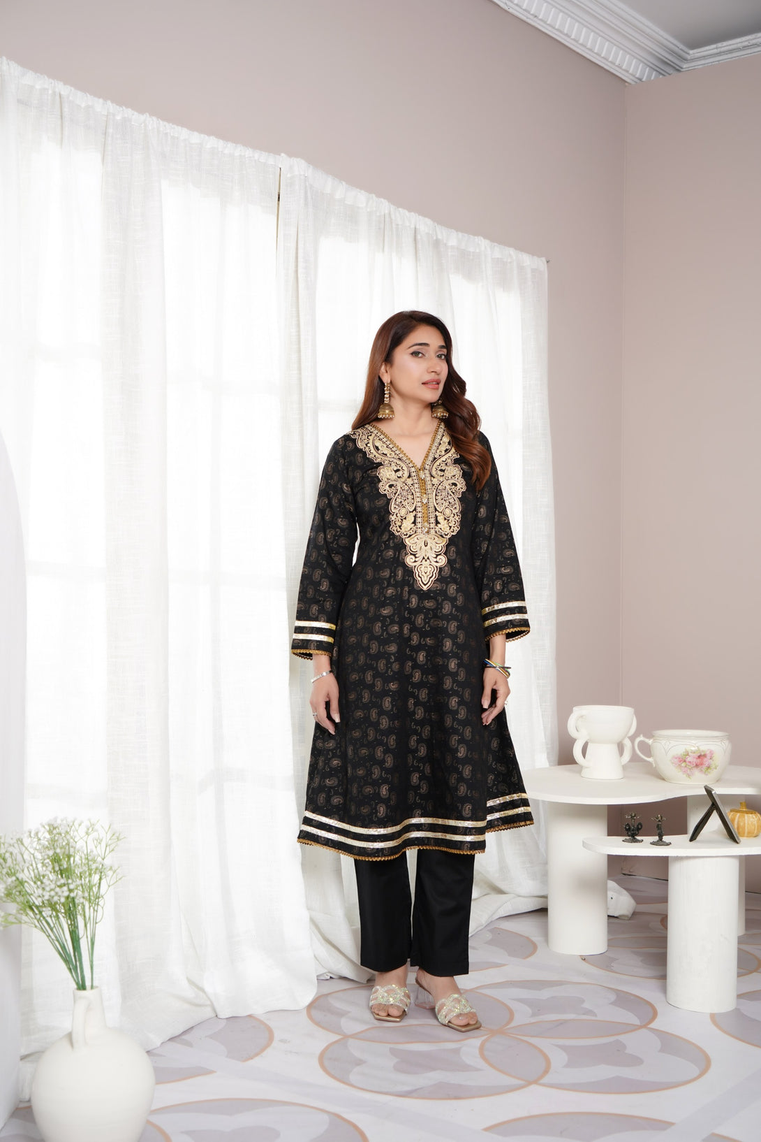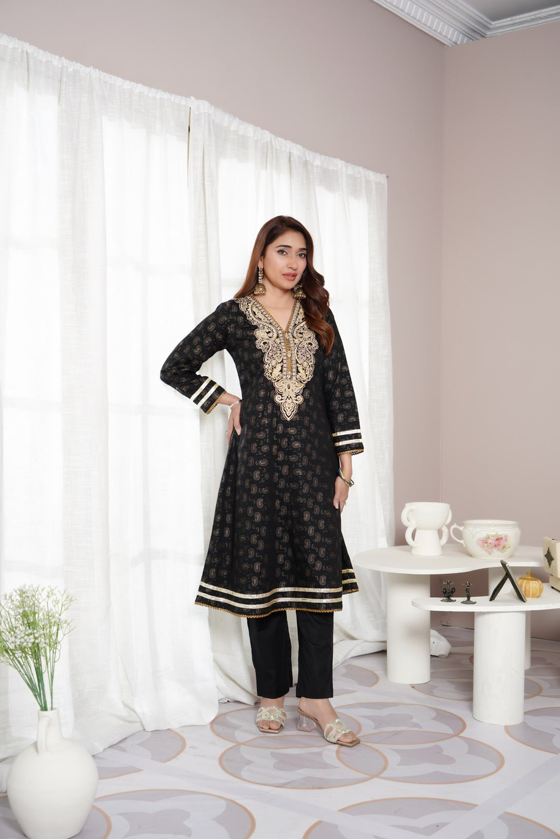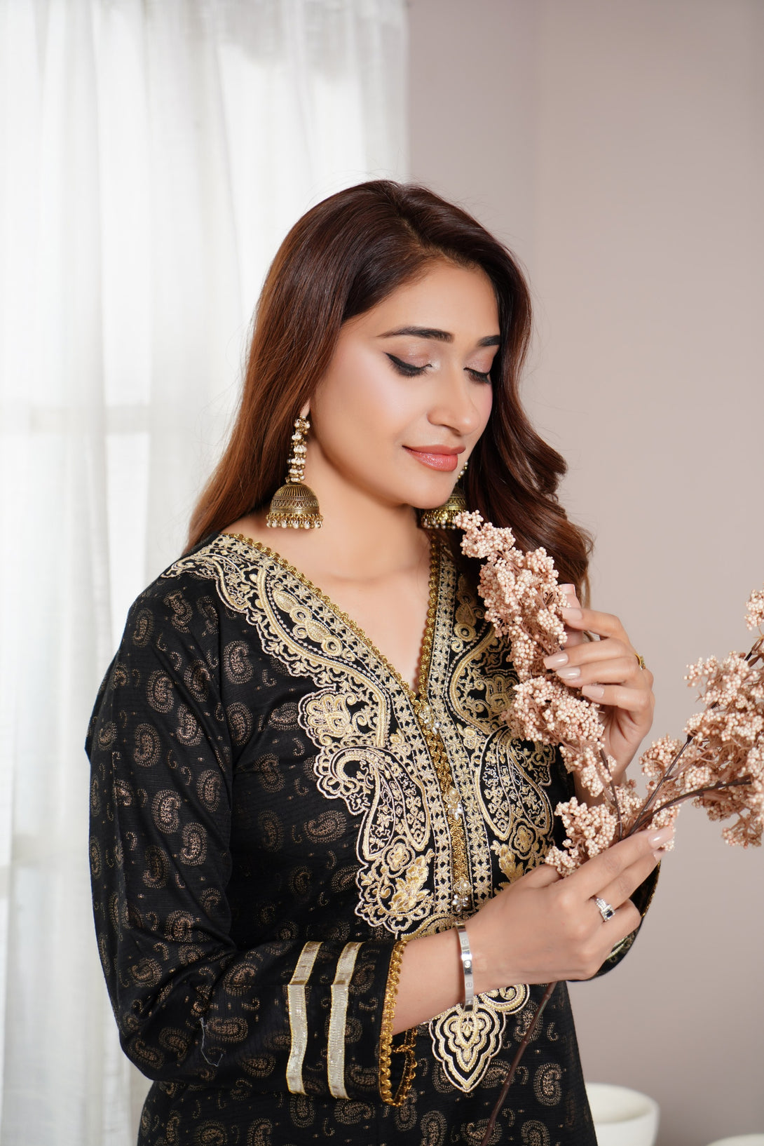 Self-Jacquard brochia embroidered RTW stitched 2pcs suit,