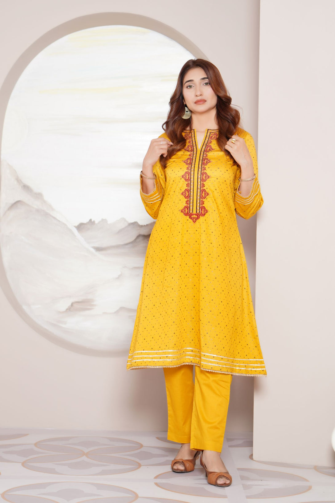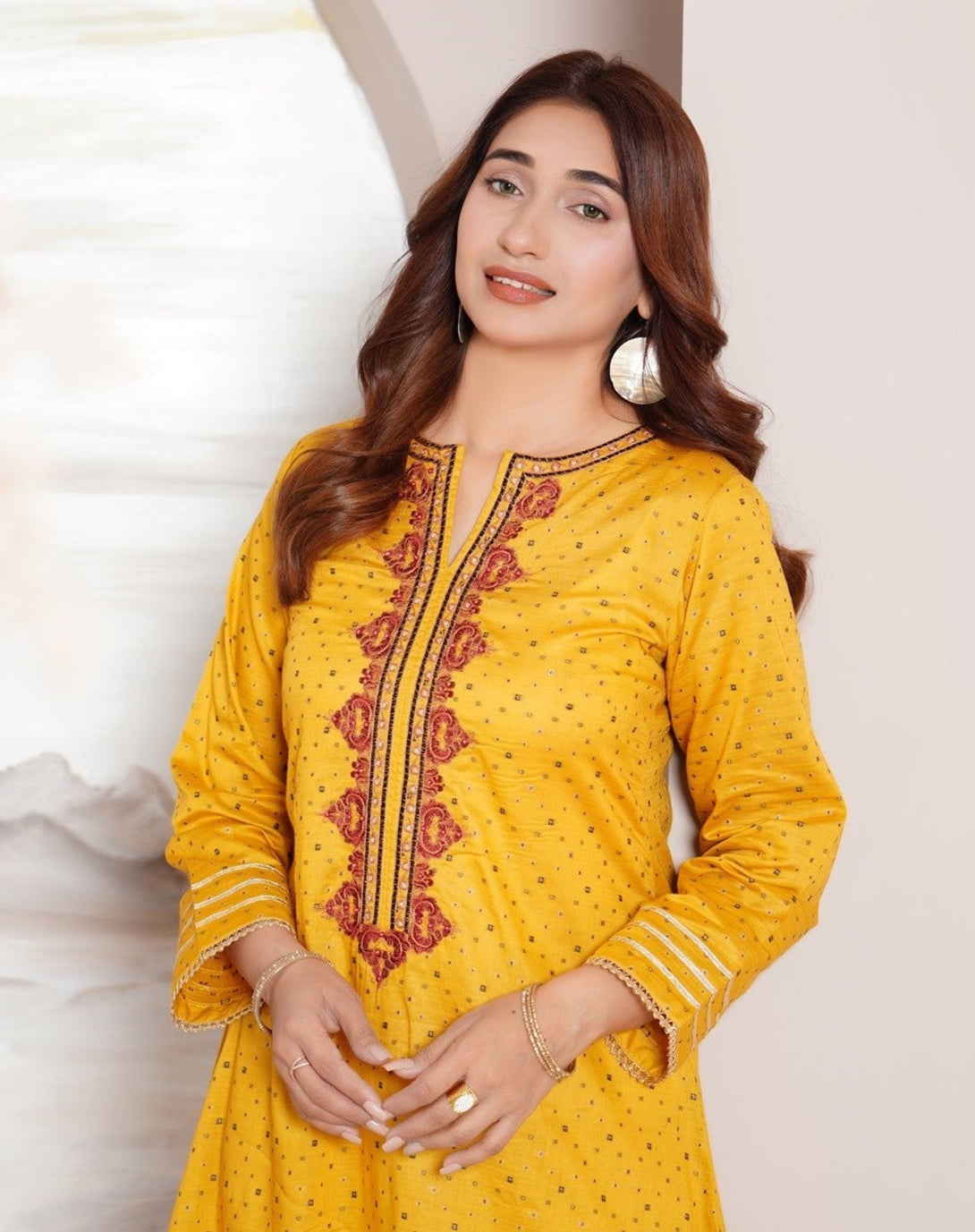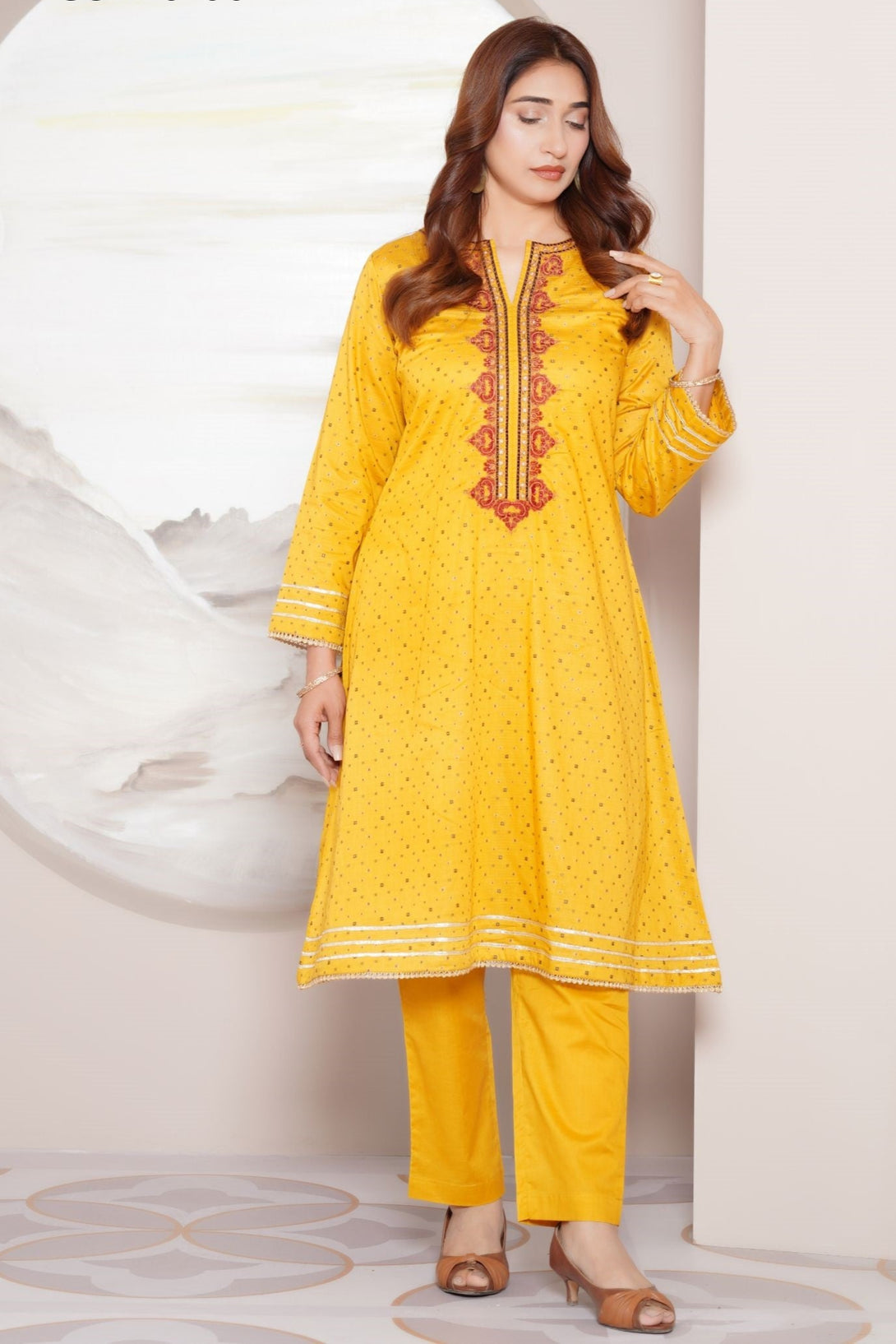 Self-Jacquard brochia embroidered RTW stitched 2pcs suit,