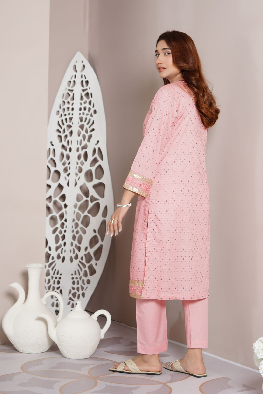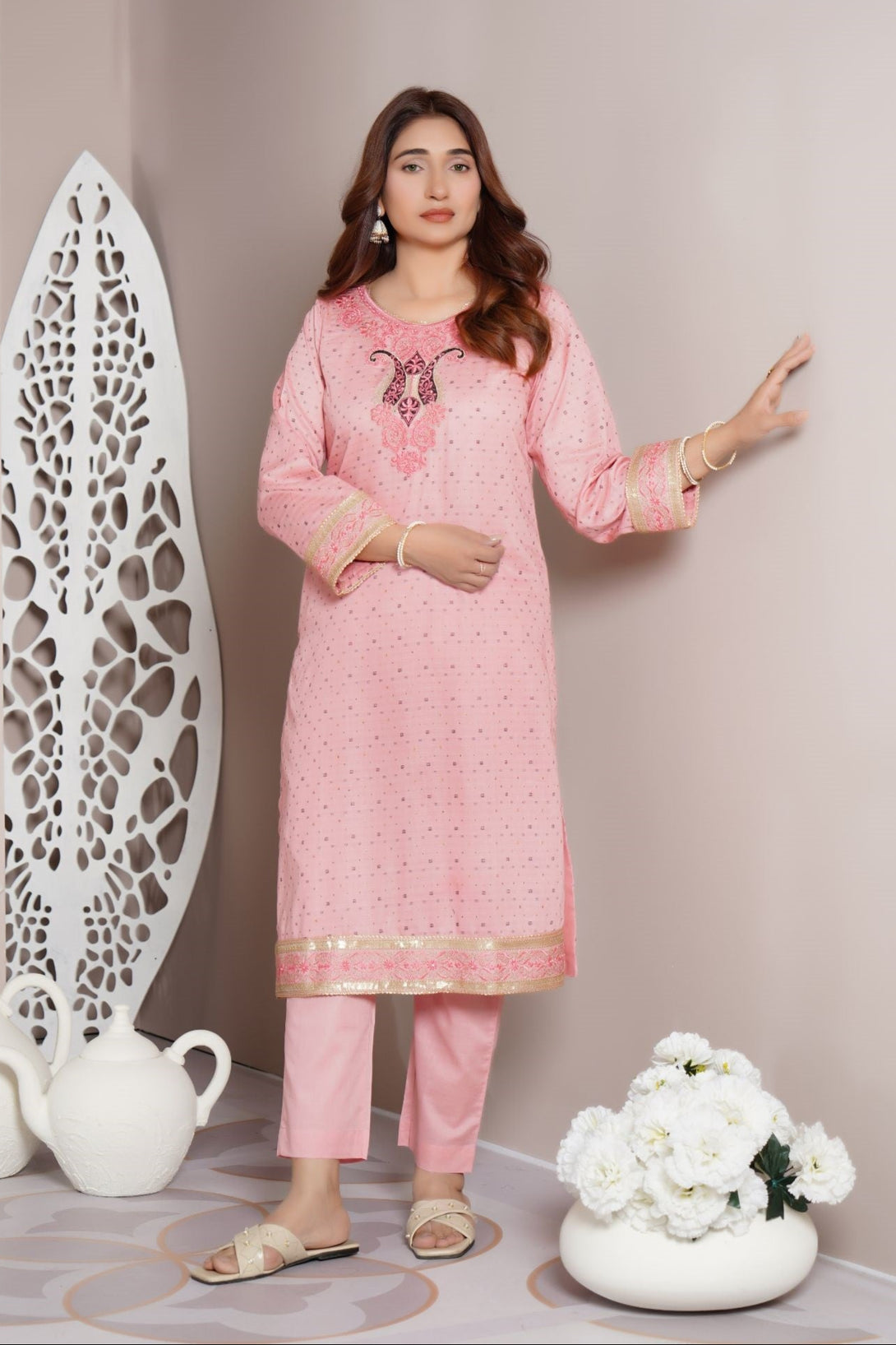 Self-Jacquard brochia embroidered RTW stitched 2pcs suit,