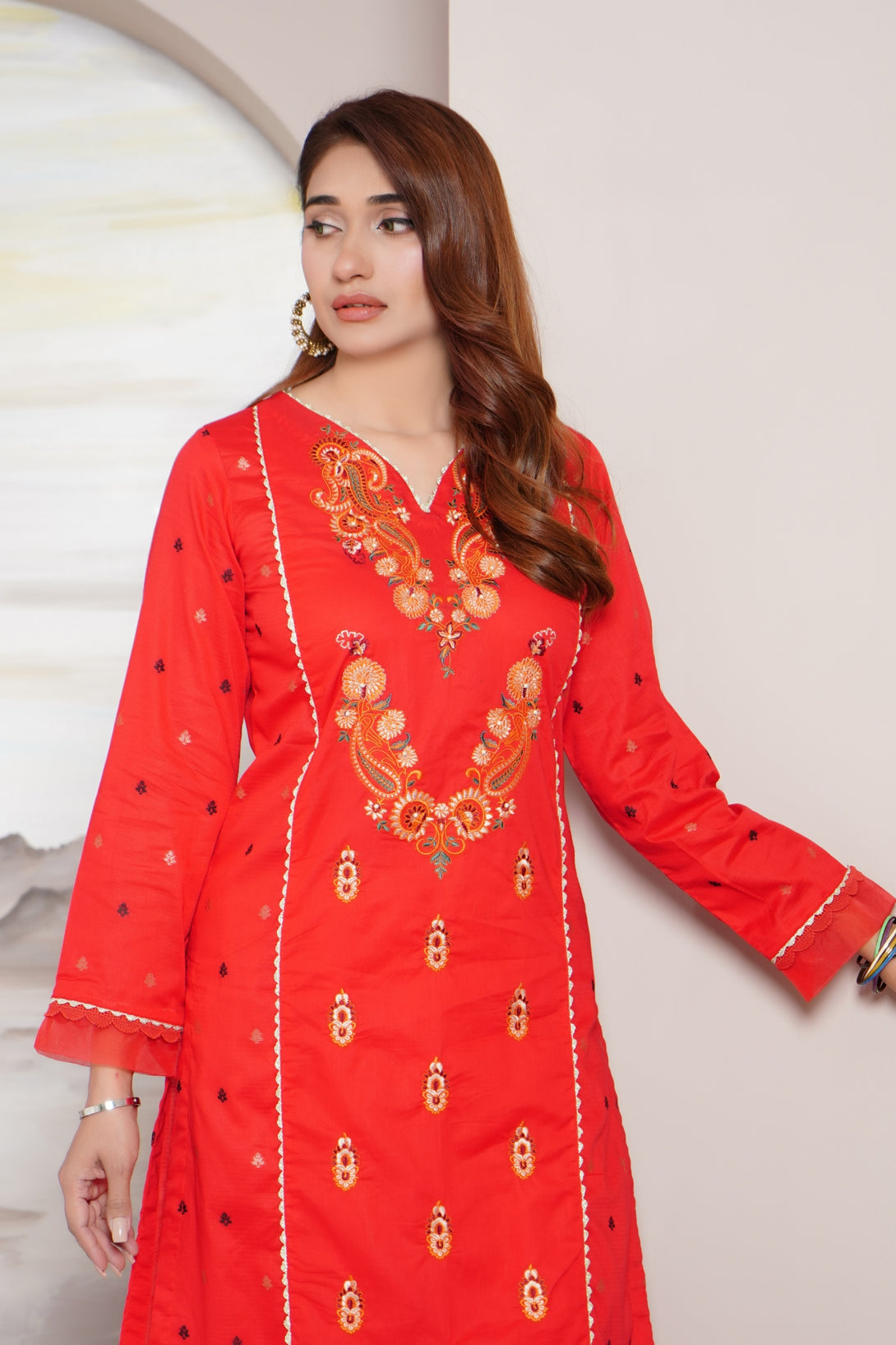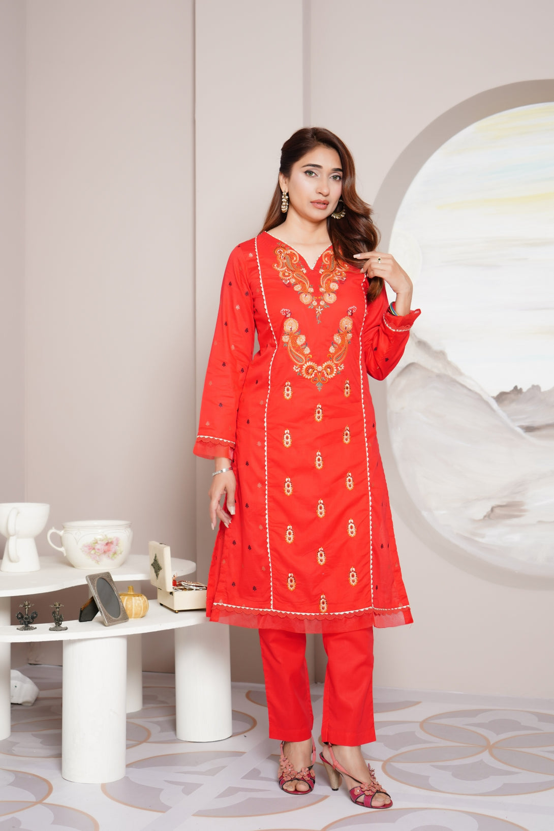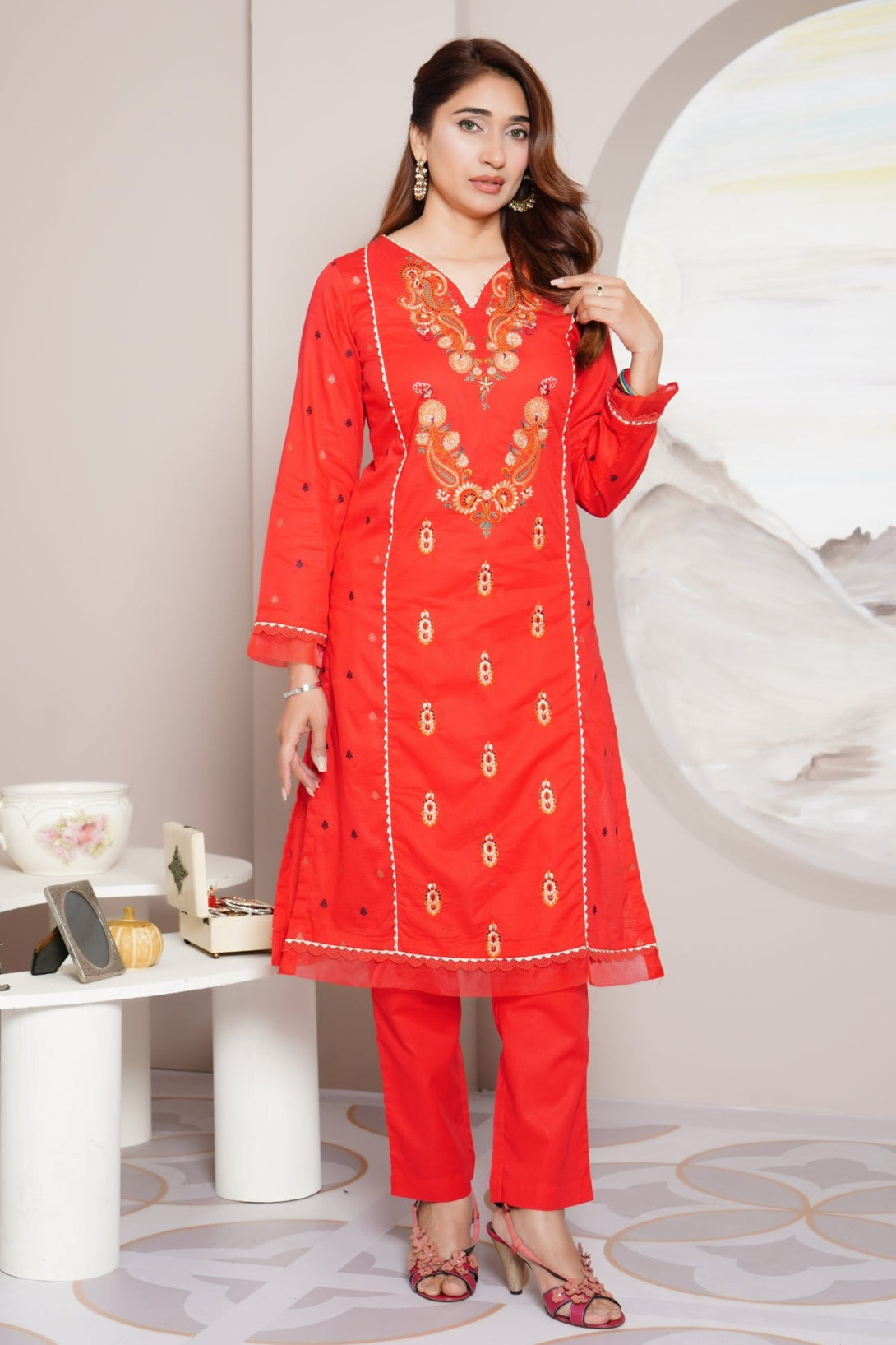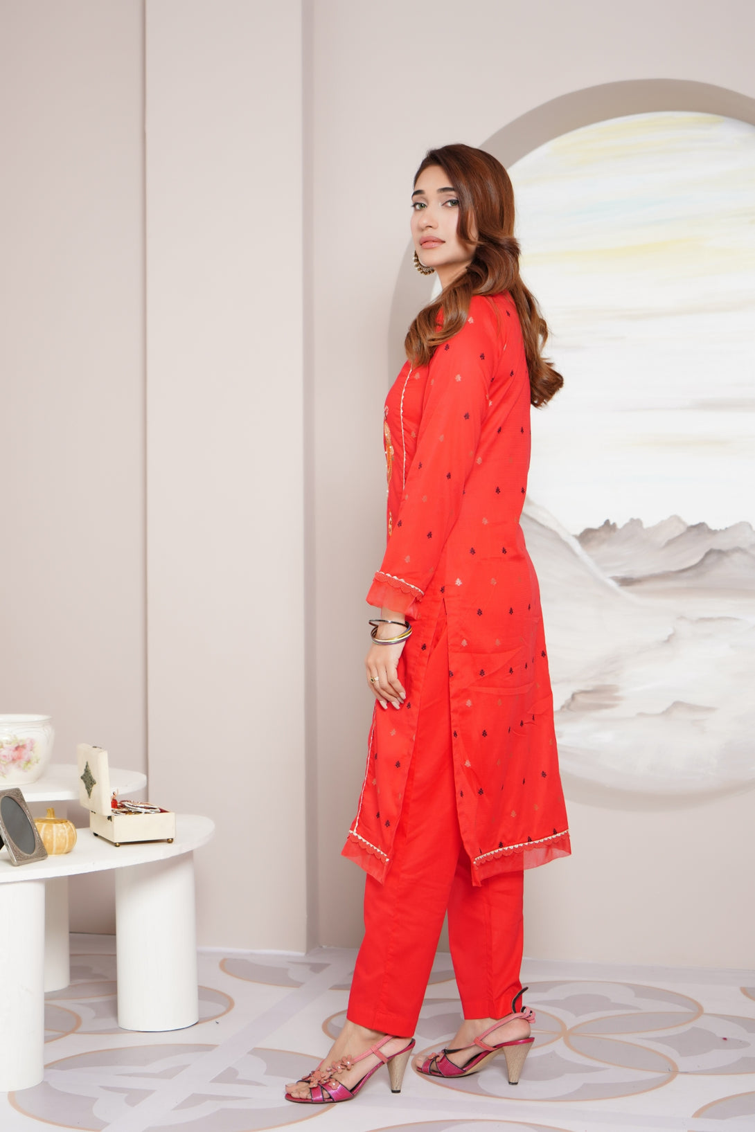 Self-Jacquard brochia embroidered RTW stitched 2pcs suit,