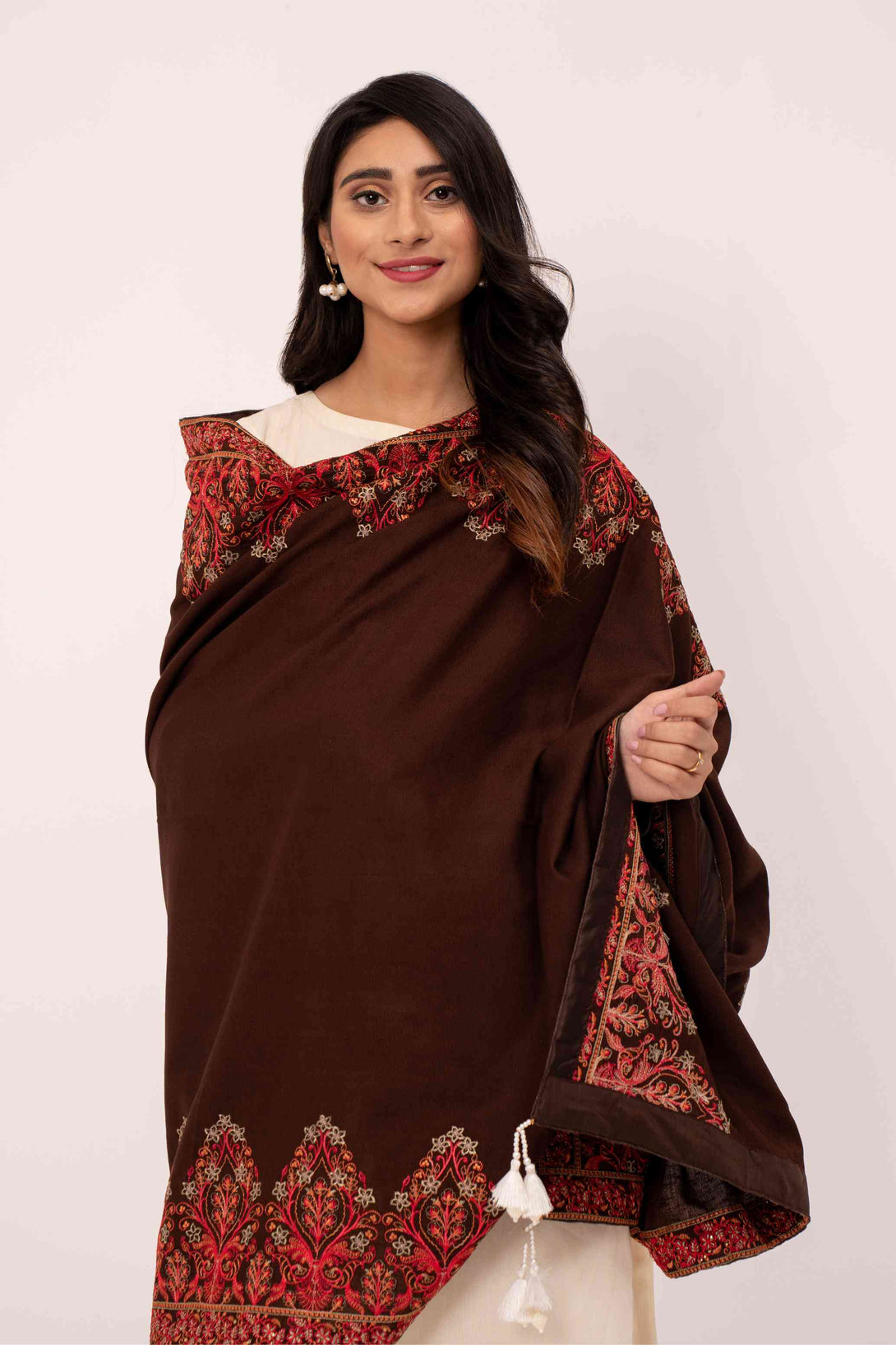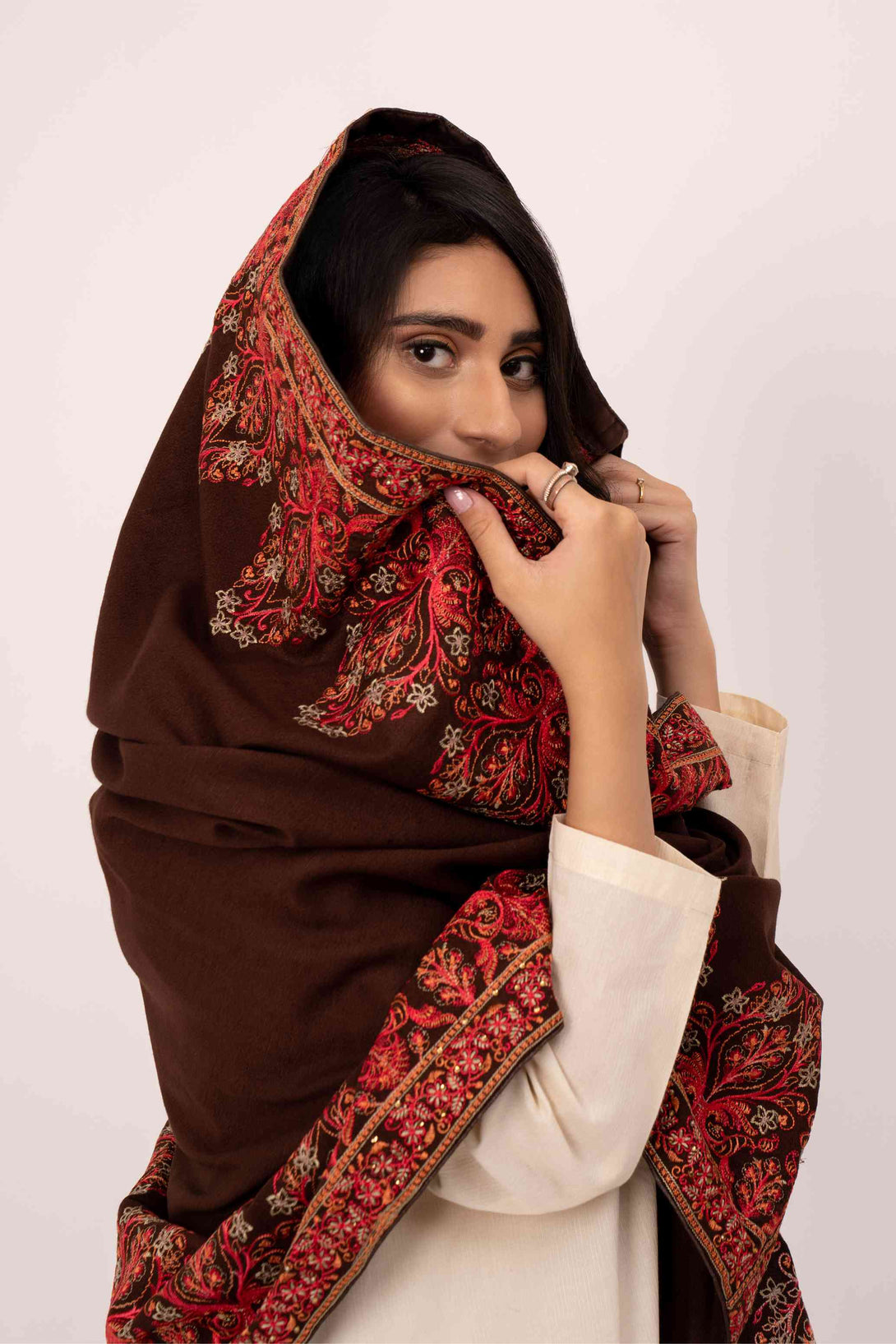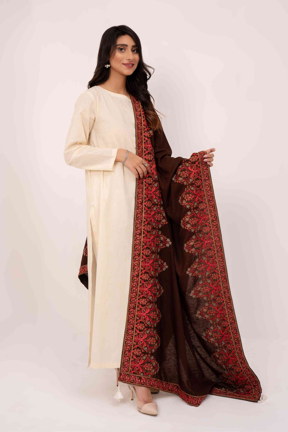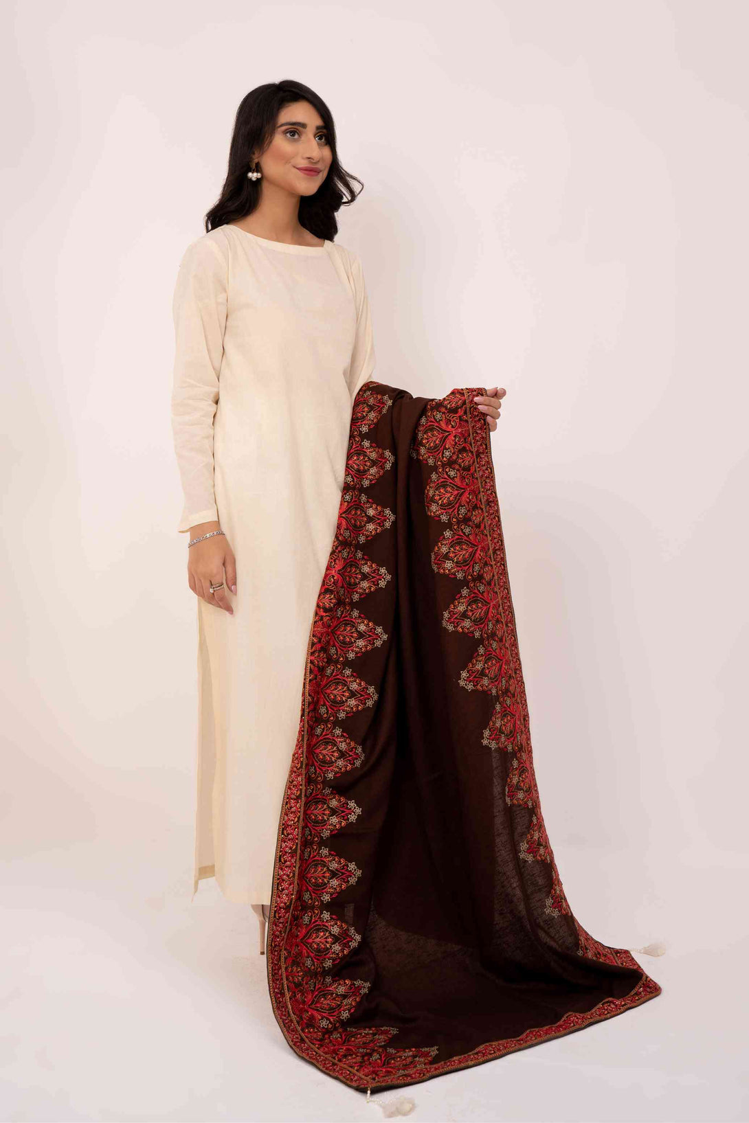 Description: PUNKH Embroidered Slub Karandi Shawl.