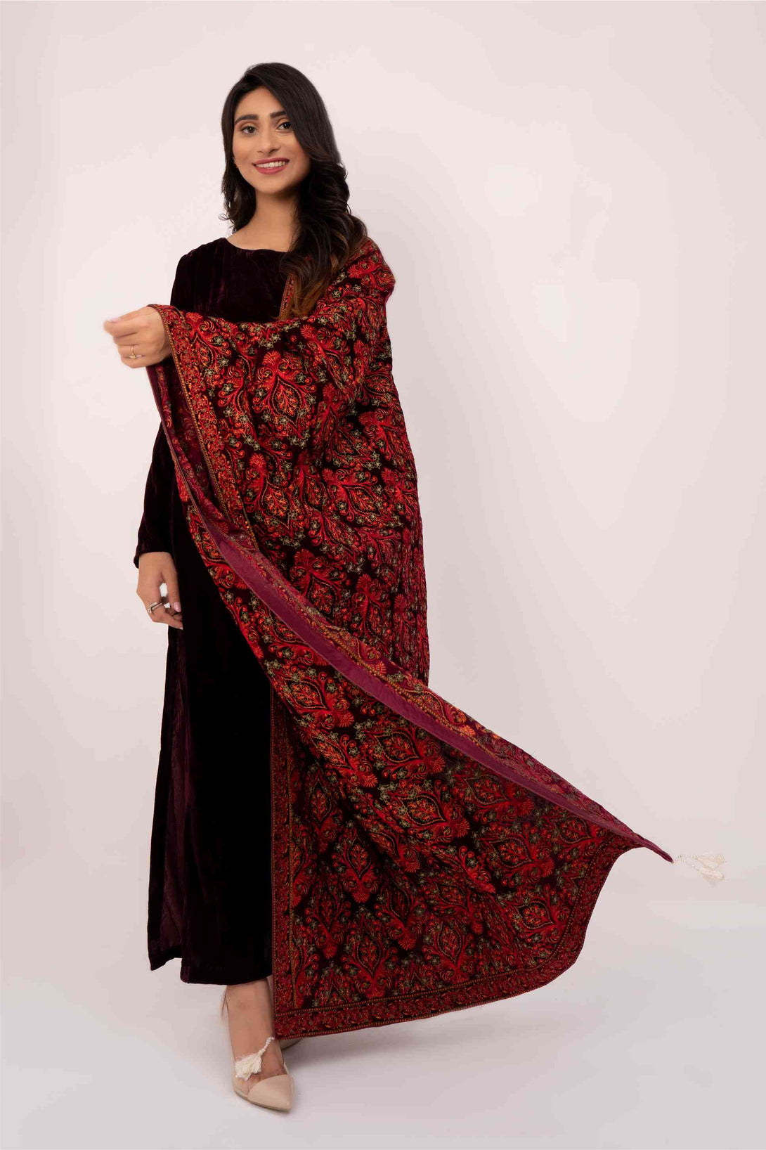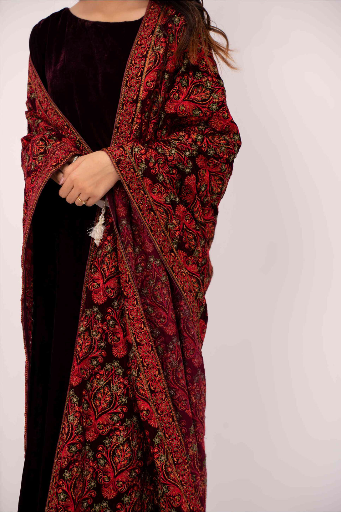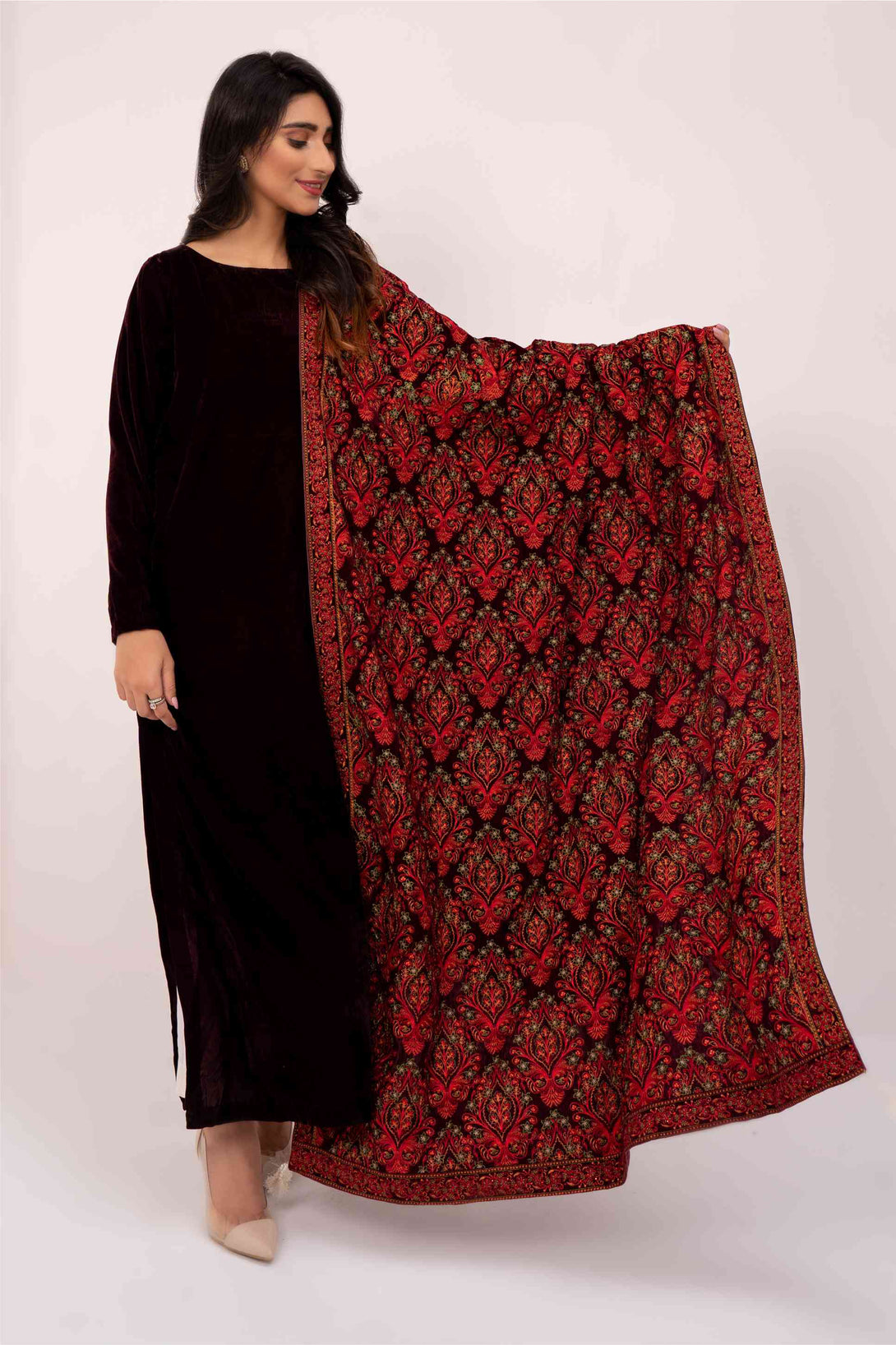 Description: 9000 Micron Velvet Embroidered Stitched Shawl