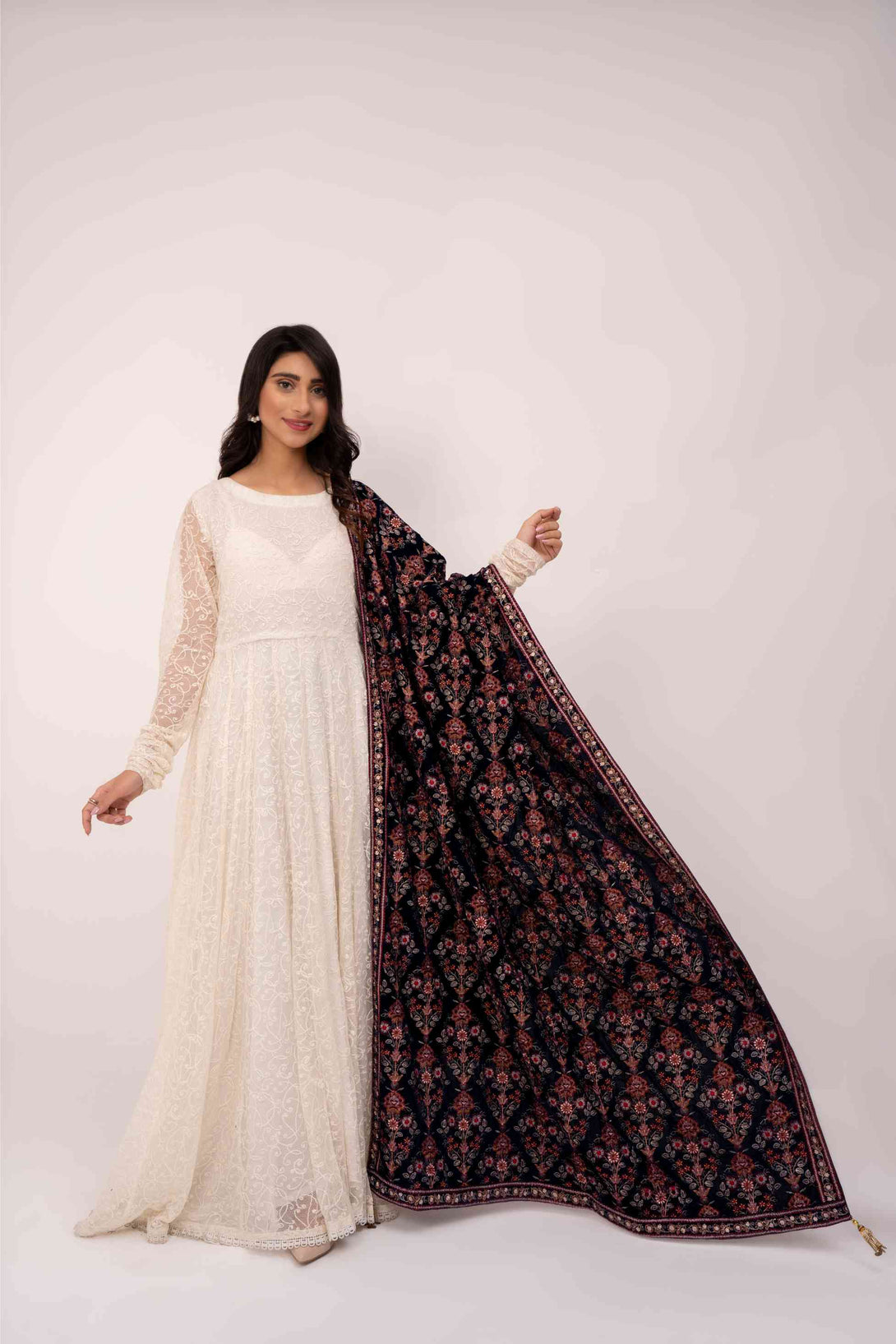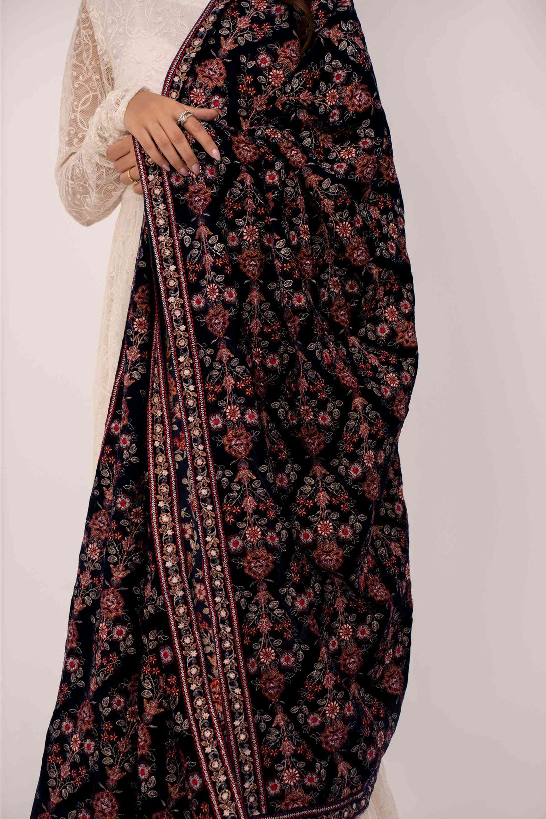 Description: 9000 Micron Velvet Embroidered Stitched Shawl