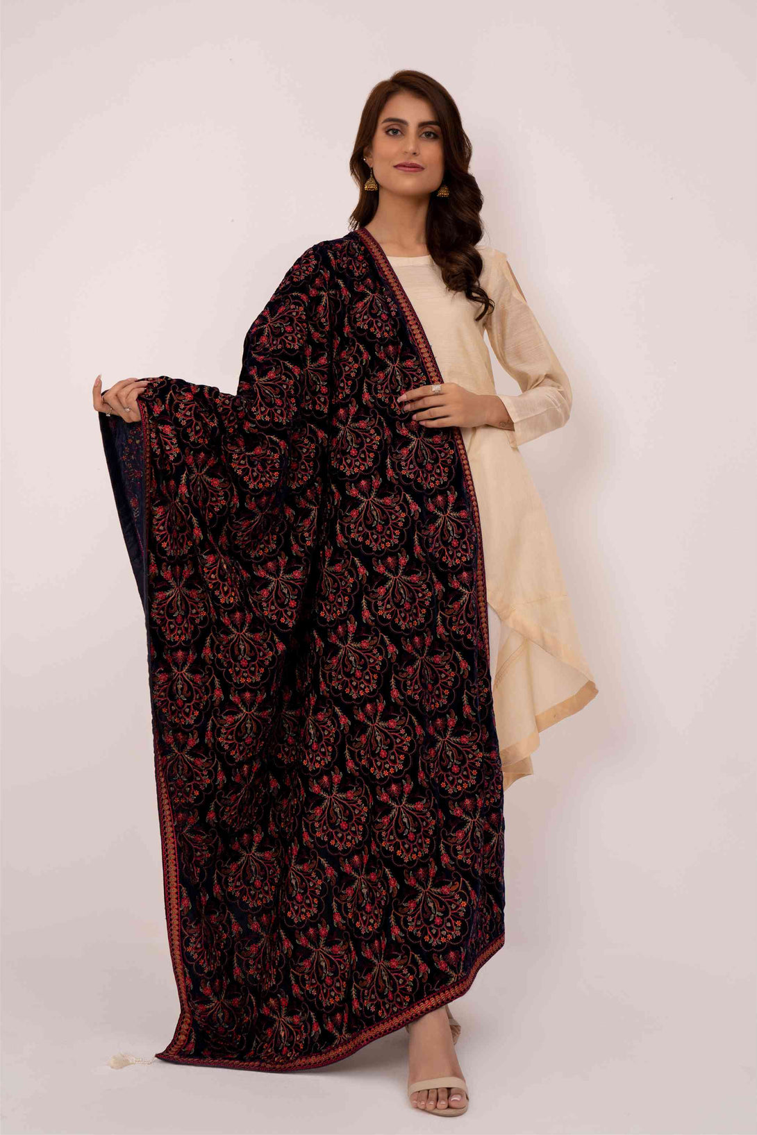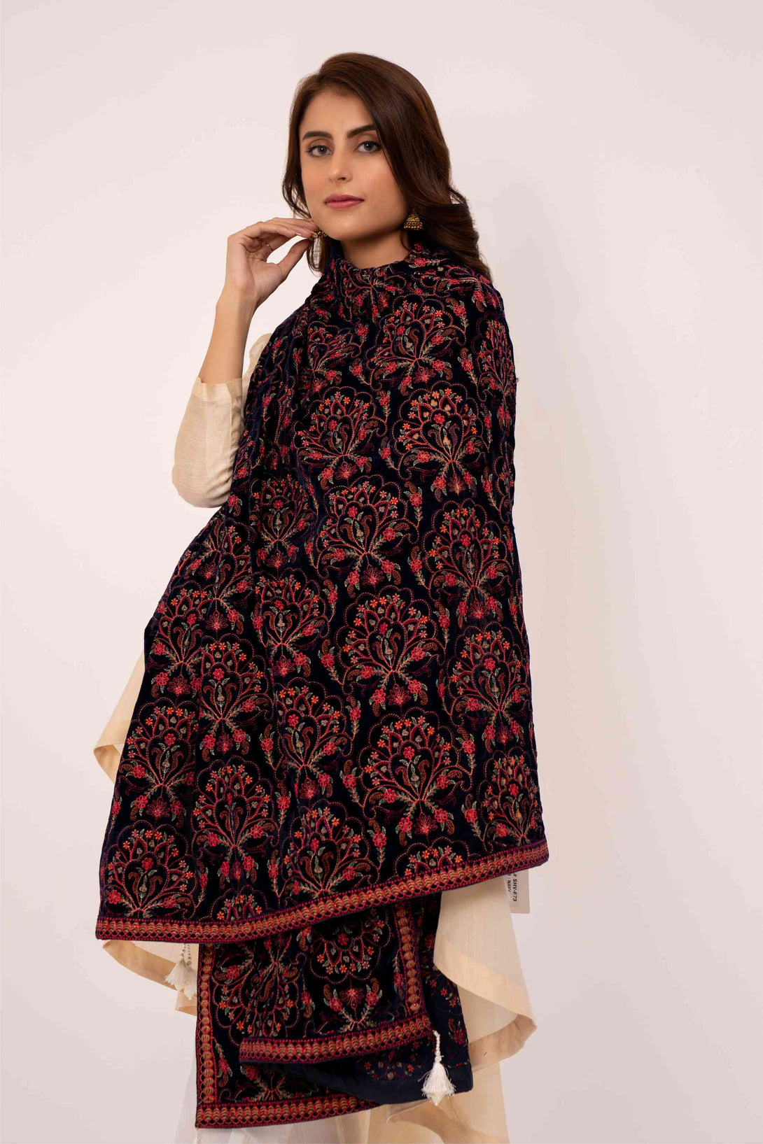 Description: 9000 Micron Velvet Embroidered Stitched Shawl