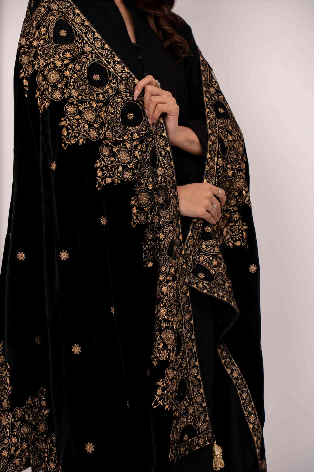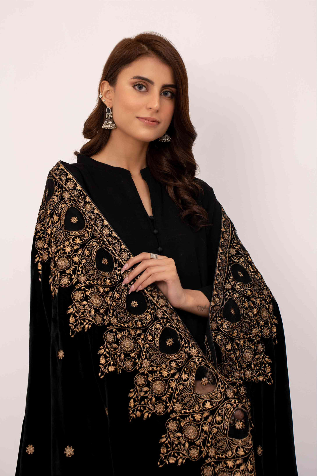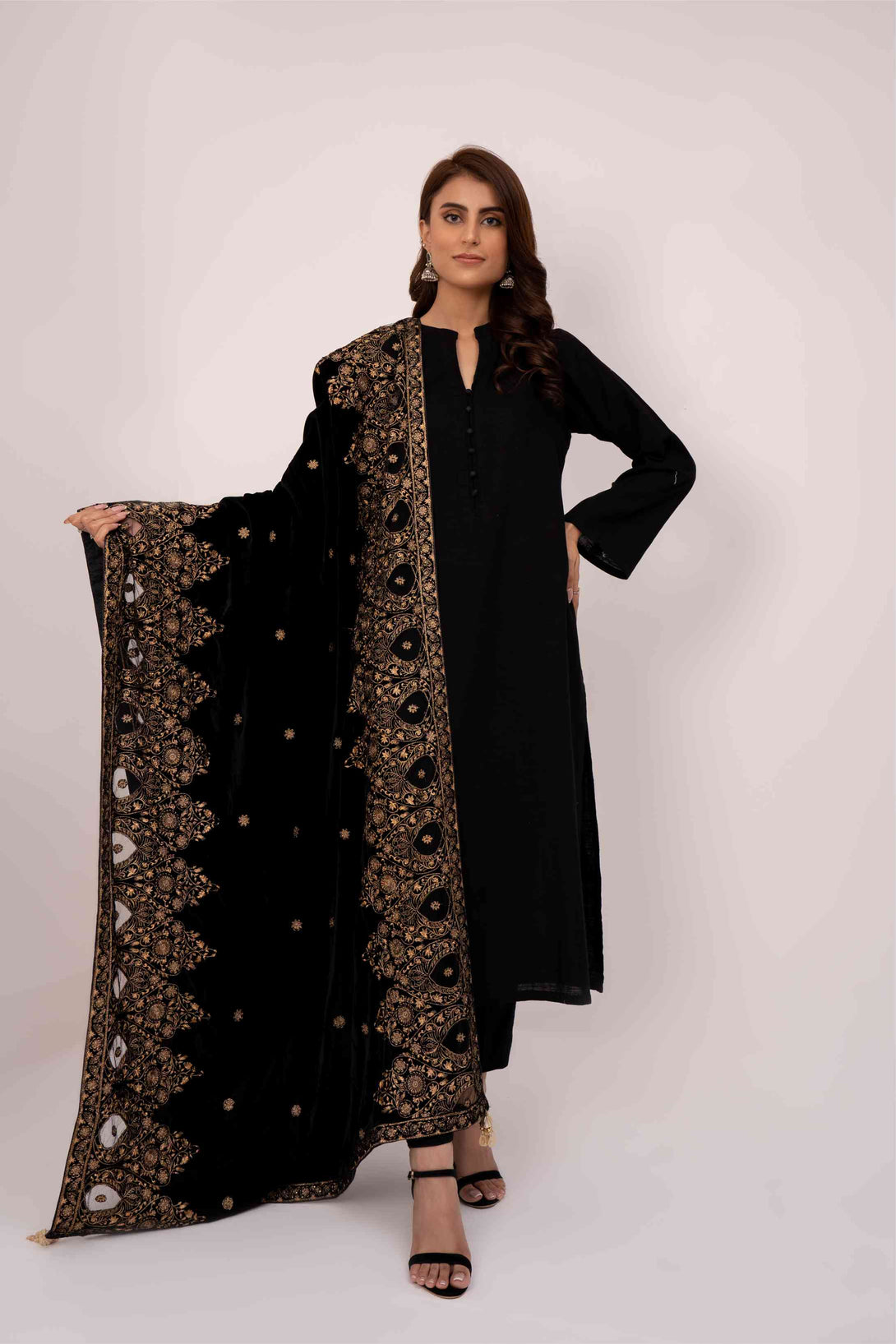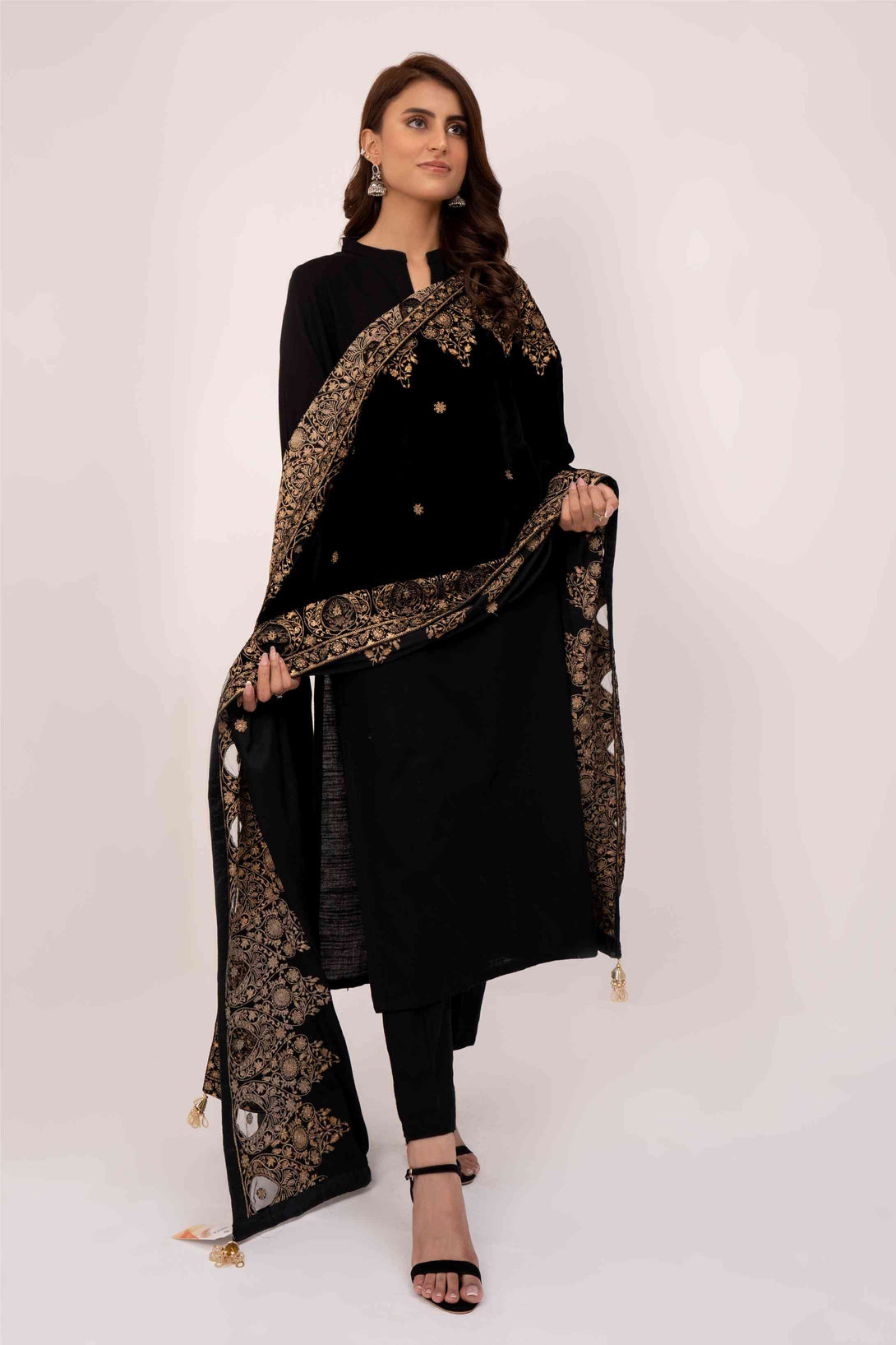 Description: 9000 Micron Velvet Embroidered Stitched Shawl