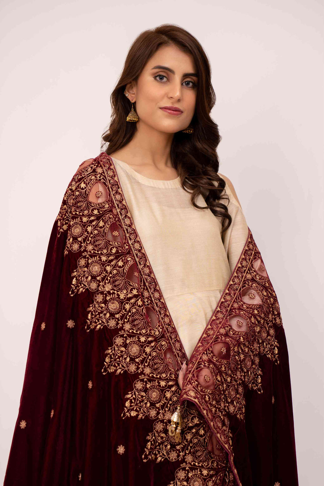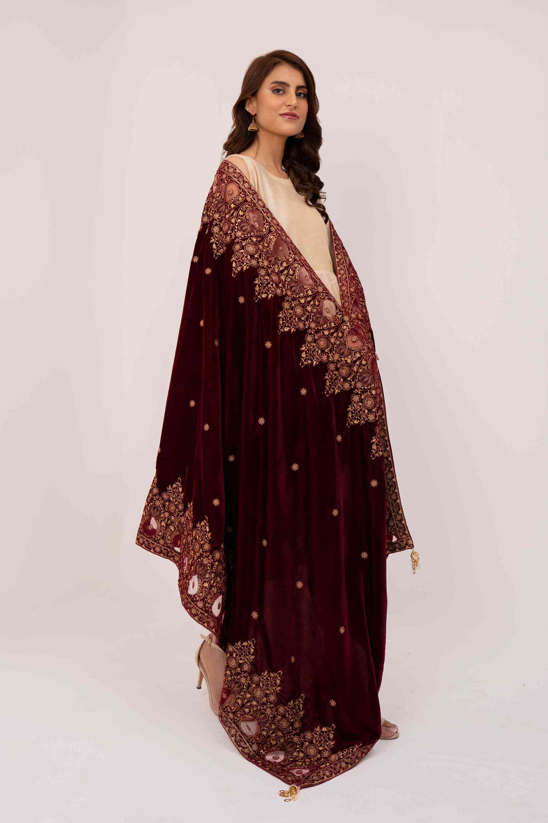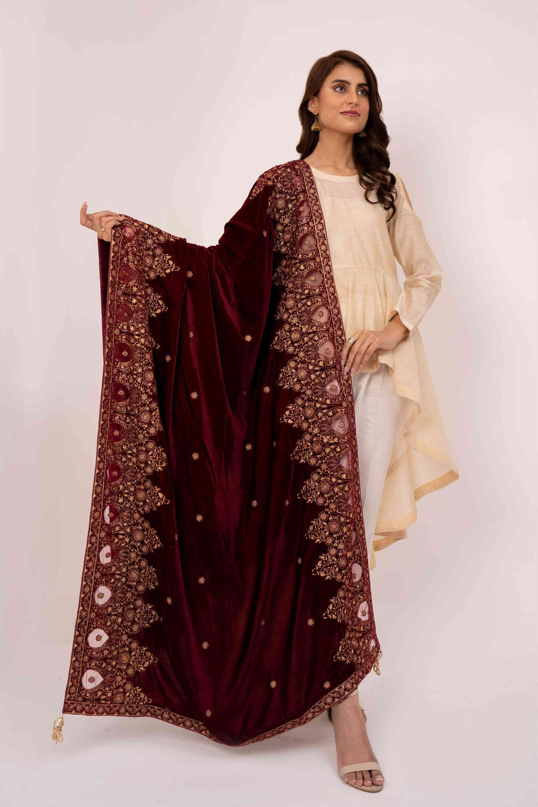 Description: 9000 Micron Velvet Embroidered Stitched Shawl