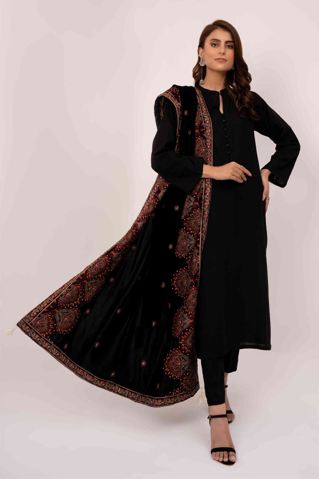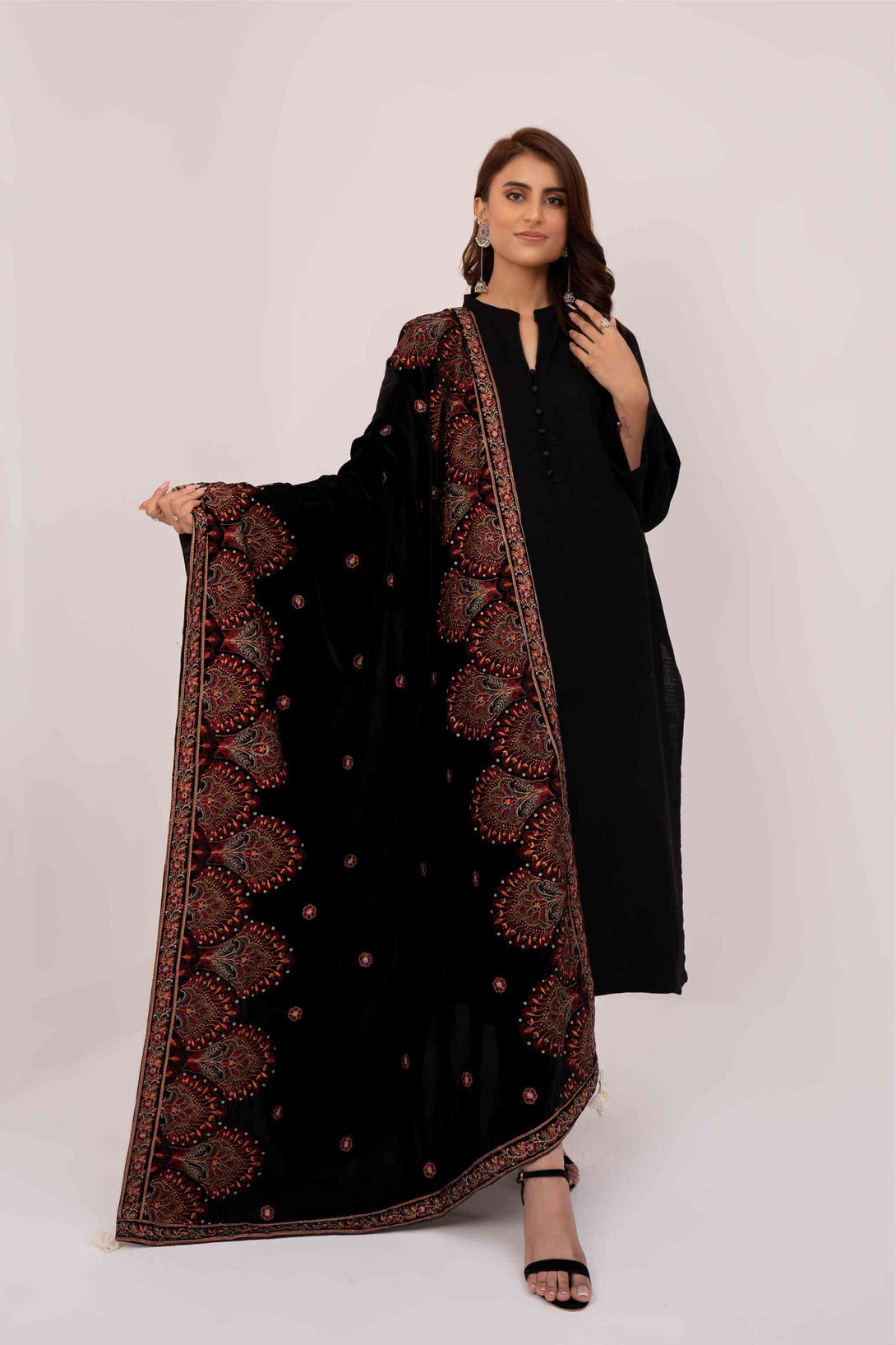 Description: 9000 Micron Velvet Embroidered Stitched Shawl