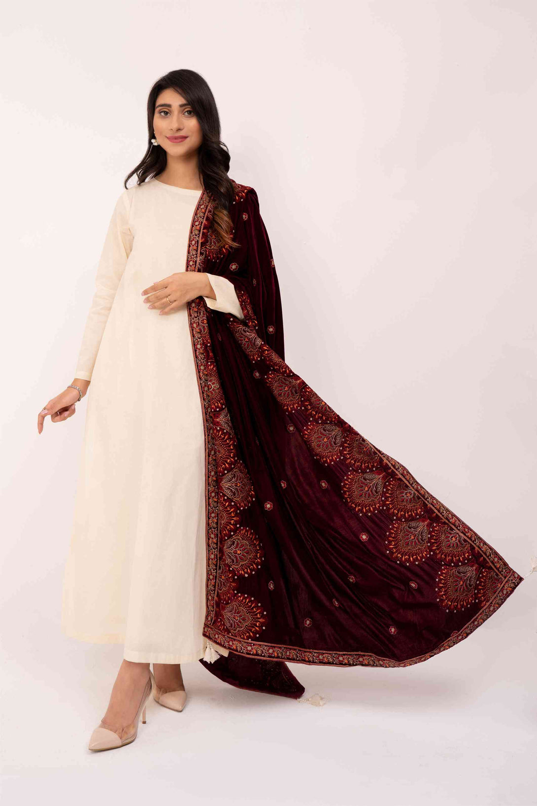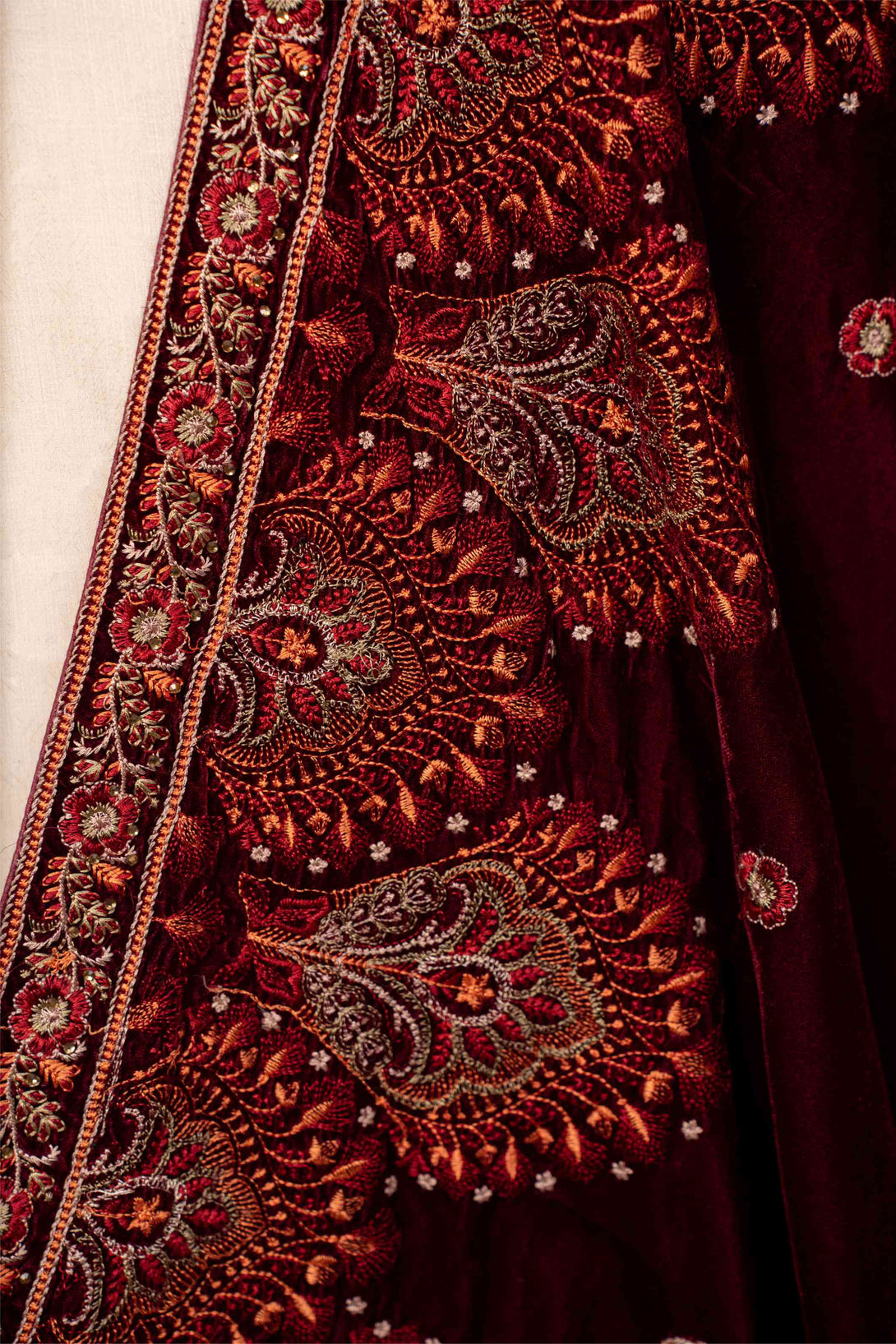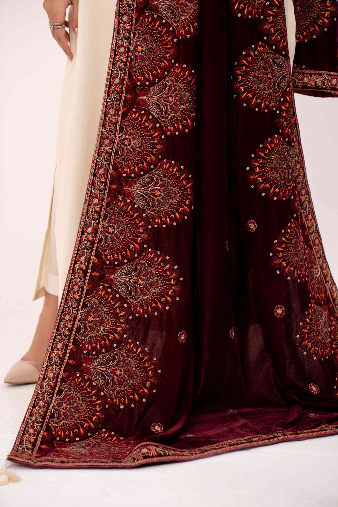 Description: 9000 Micron Velvet Embroidered Stitched Shawl