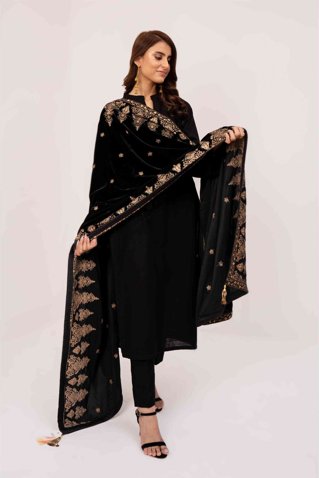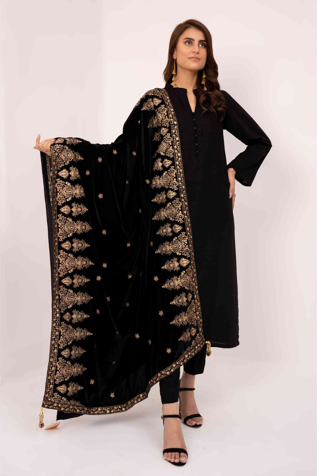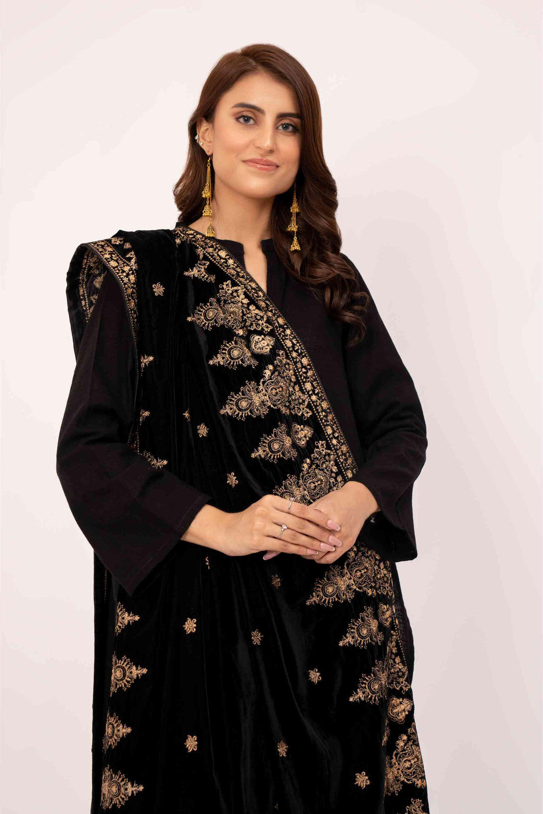 Description: 9000 Micron Velvet Embroidered Stitched Shawl