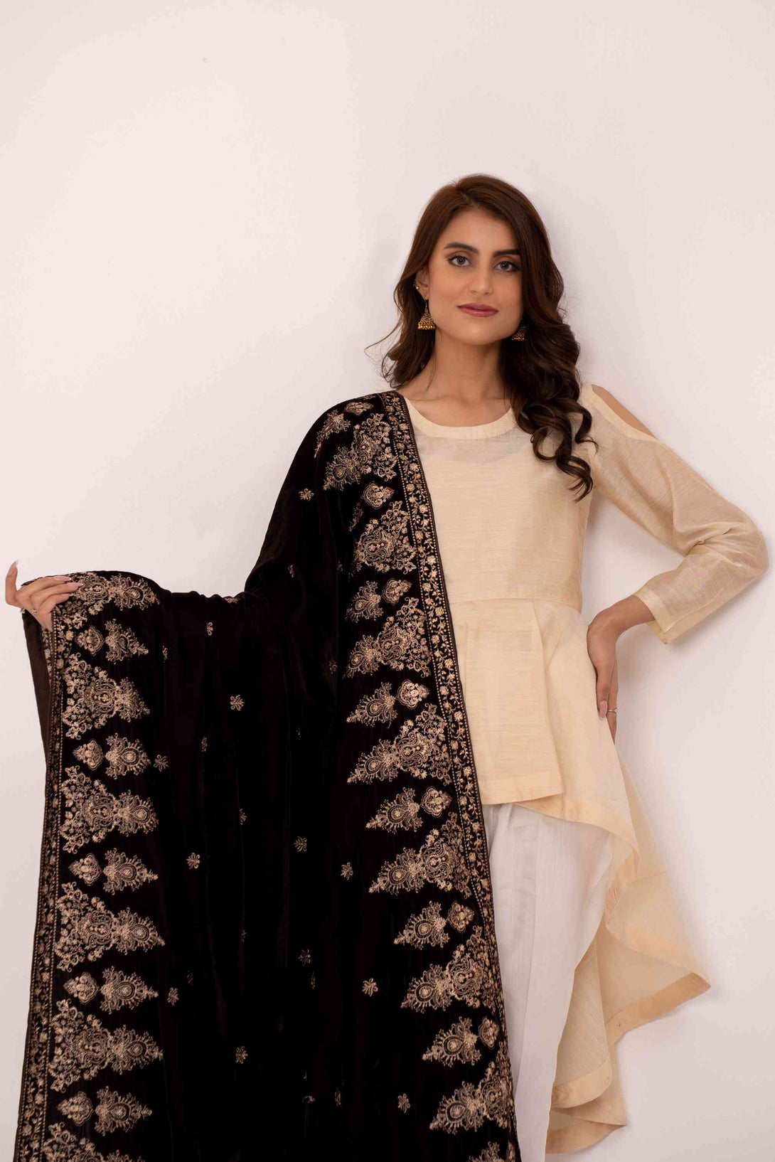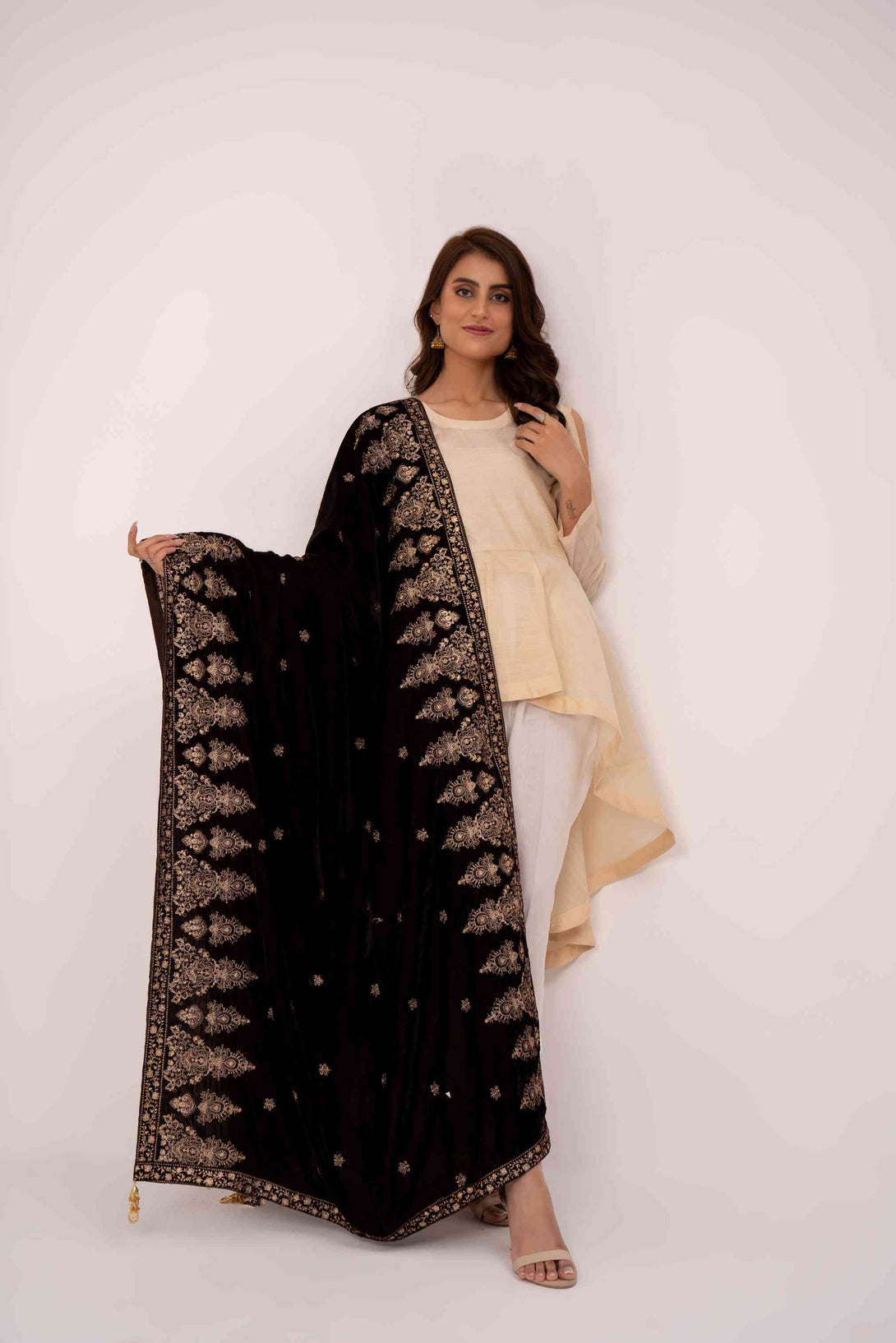 Description: 9000 Micron Velvet Embroidered Stitched Shawl