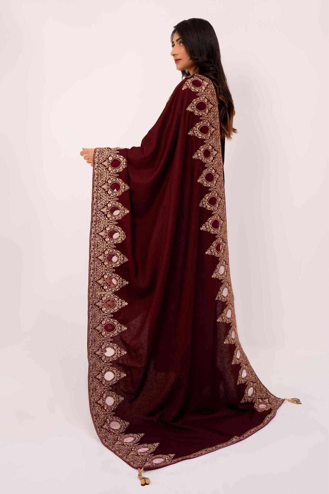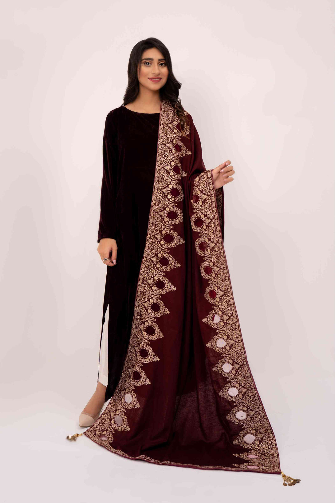 Description: 9000 Micron Velvet Embroidered Stitched Shawl